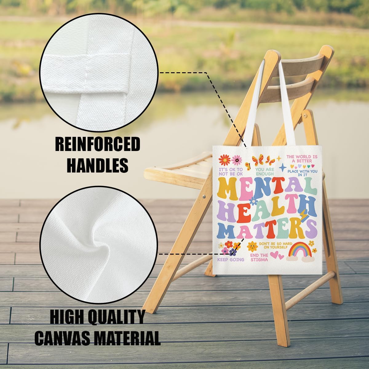Mental Health Tote Bag Gifts for Women, Inspirational Therapy Gifts Mental Health Matters Canvas Tote Bag for Work Shopping Travel Daily Use